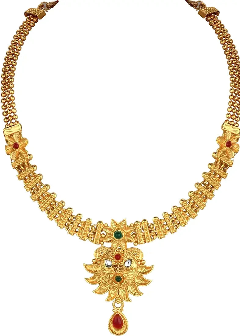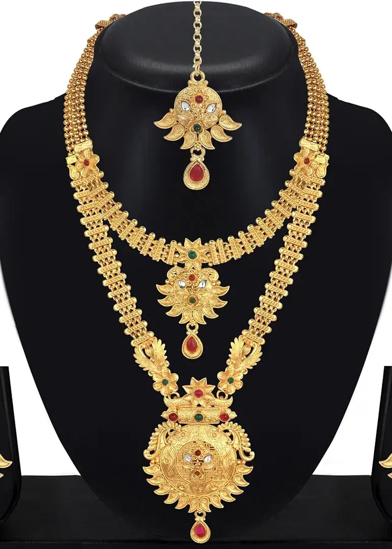 Artificial Gold Jewellery Necklace Set With Earrings & Maang Tikka