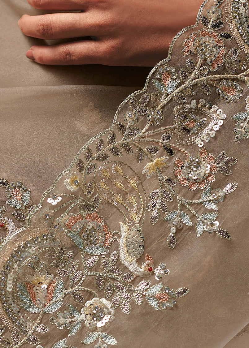 Beige Organza Tissue Silk Embroidered Bridal Saree & Red Blouse