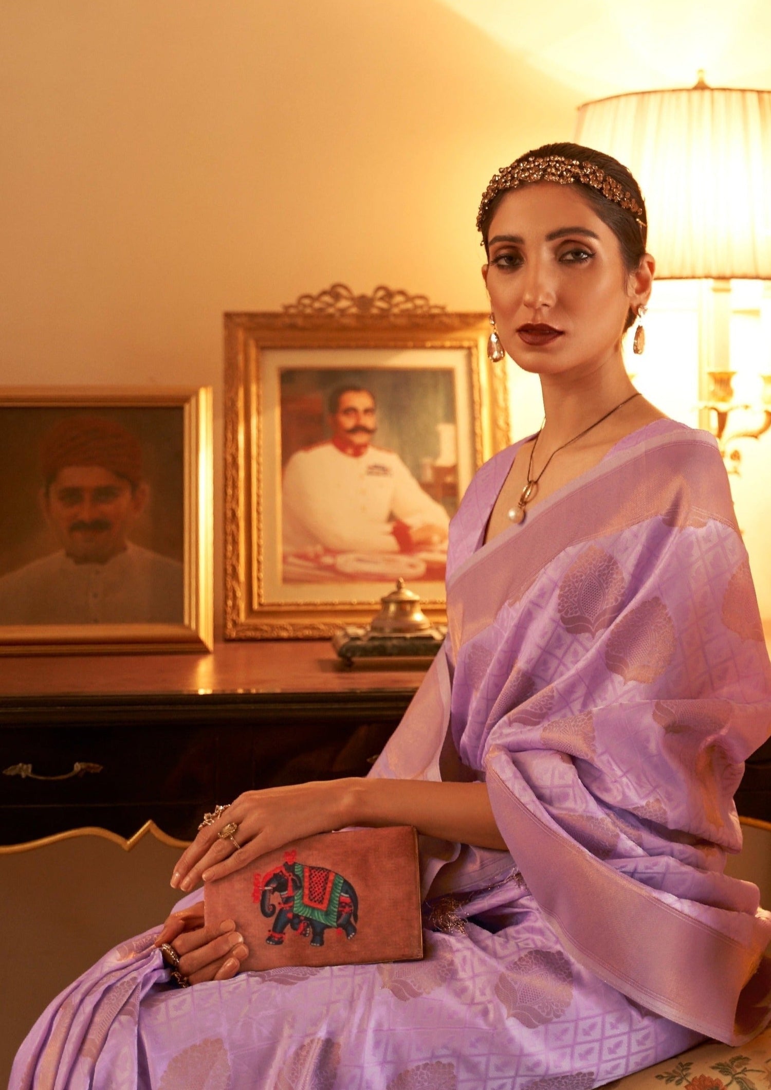 Copper Zari Handloom Silk Lavender Purple Banarasi Saree