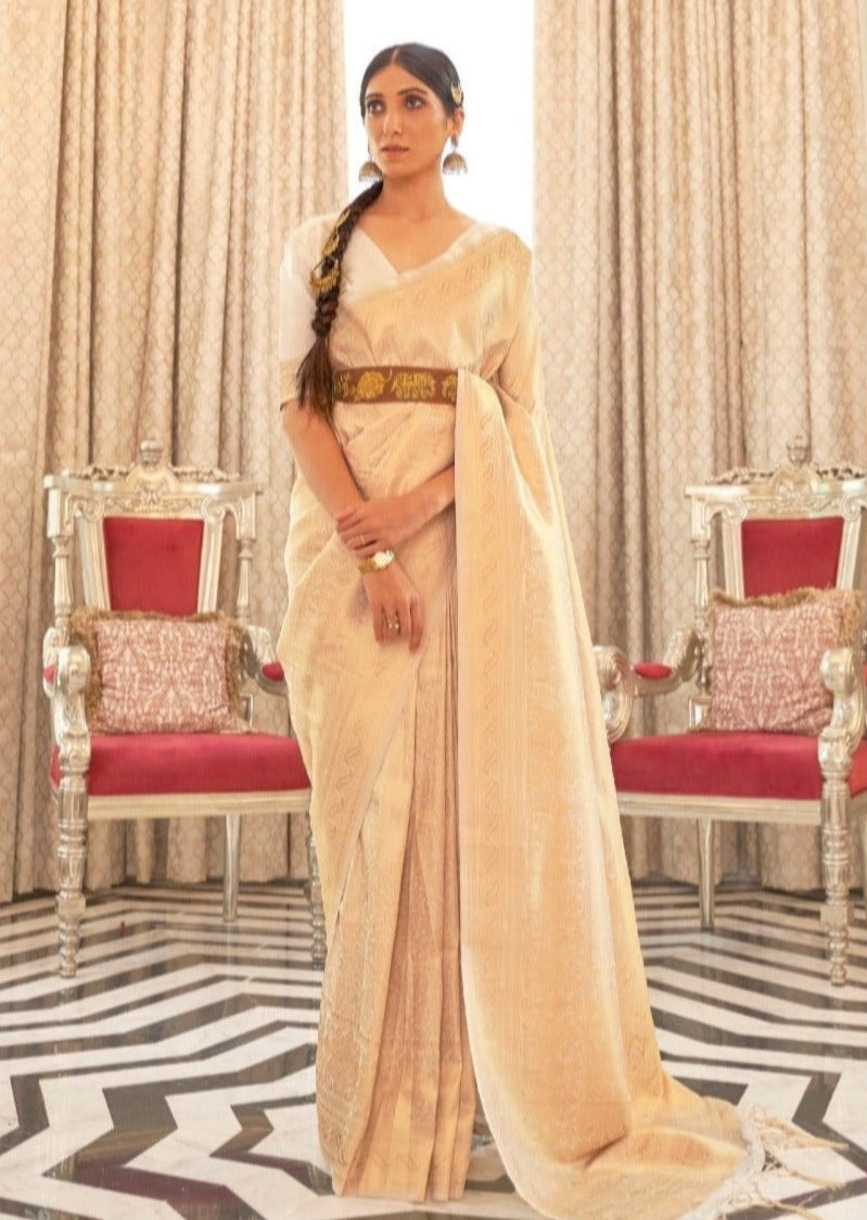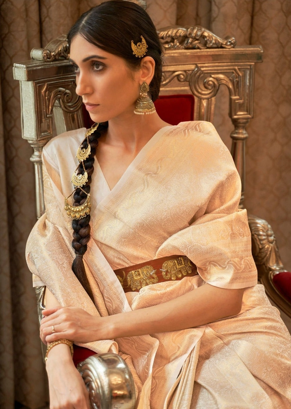 CREAM KANJIVARAM SILK HANDLOOM SAREE ONLINE SHOPPING FOR WEDDING