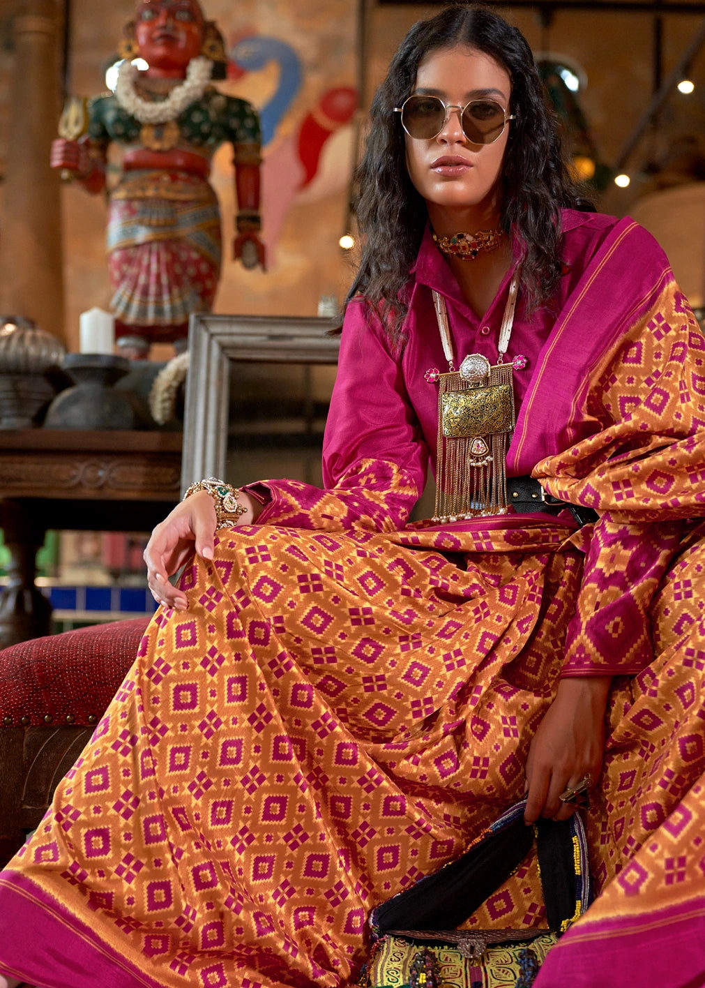 Designer Mustard Yellow and Pink Patola Silk Saree