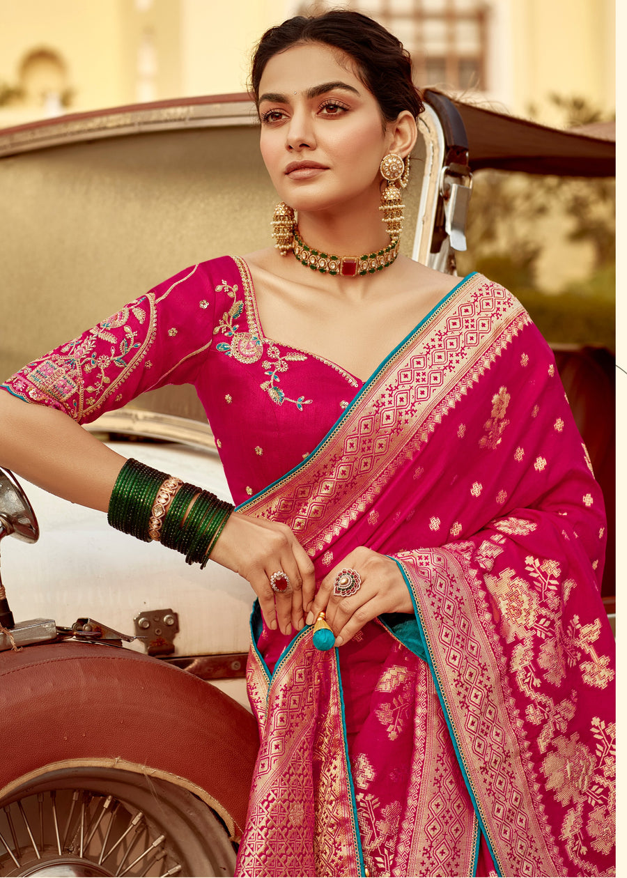 Dola Banarasi Silk Pinkish Red Bridal Saree With Embroidered Blouse