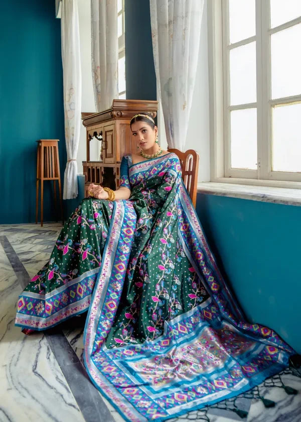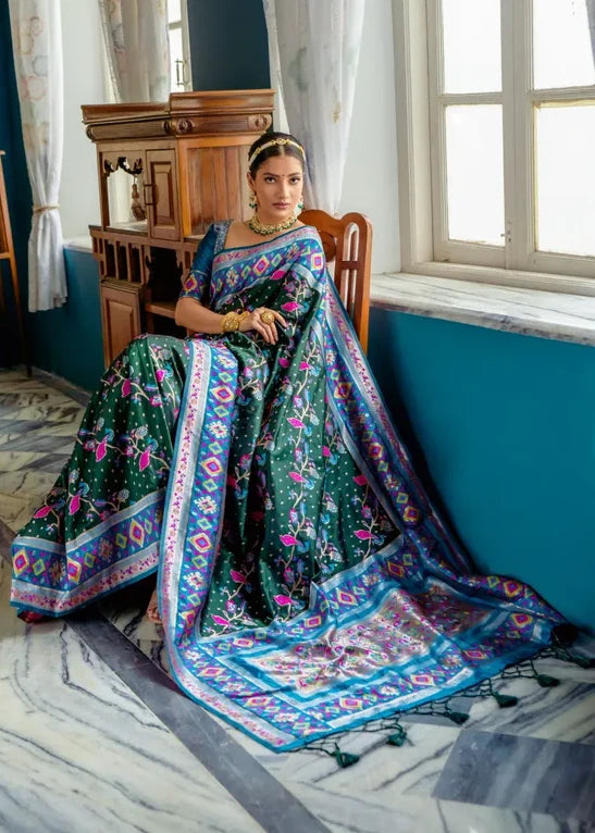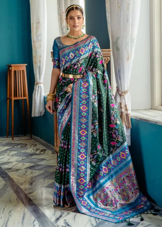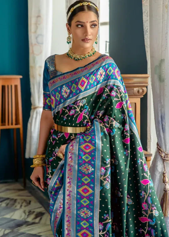 Fusion Banarasi Patola Silk Dark Green Saree with Paithani Pallu
