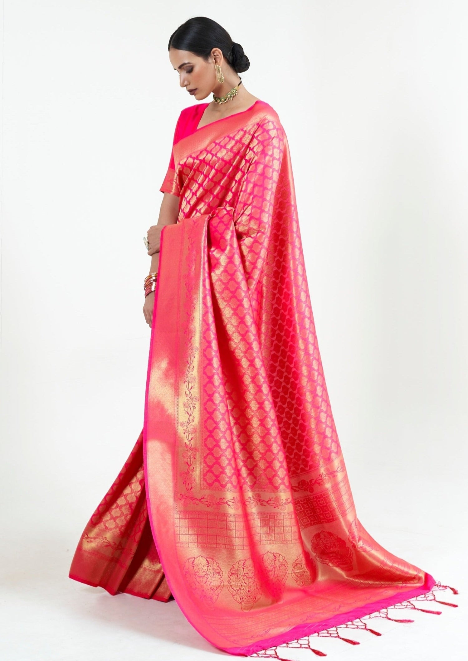 HOT PINK KANJIVARAM SILK HANDLOOM SAREE ONLINE SHOPPING FOR WEDDING