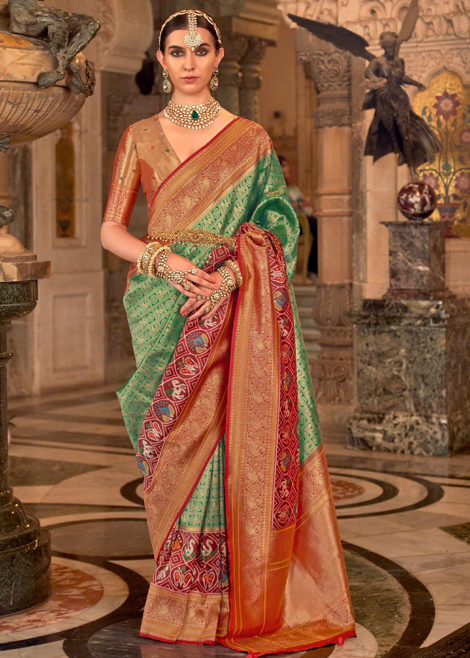Kanjivaram Patola Fusion Emerald Green Handloom Silk Saree