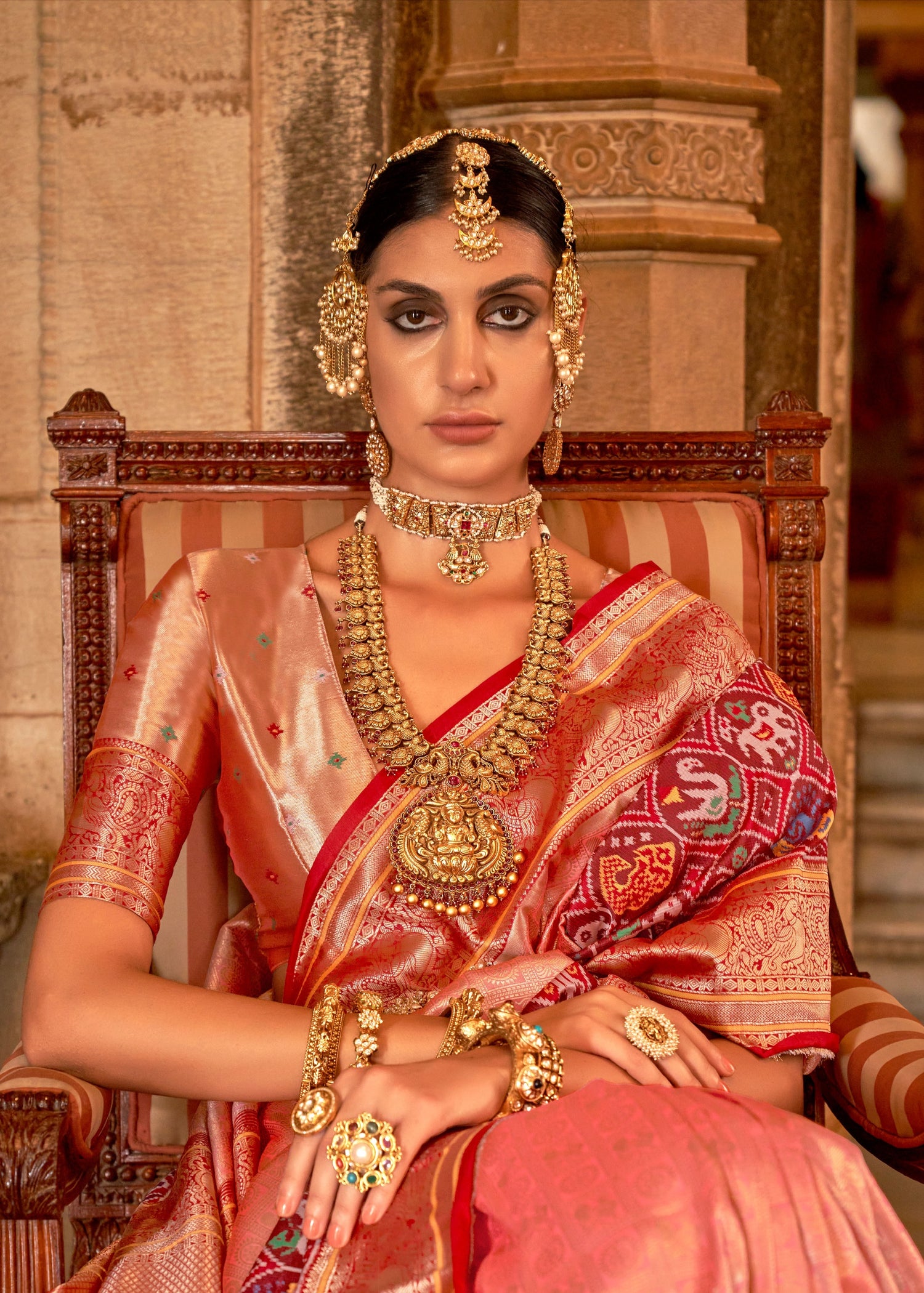Kanjivaram Patola Fusion Light Pink Handloom Silk Saree