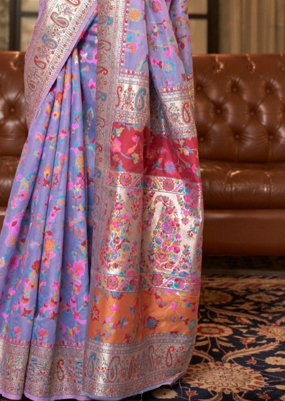 Kashmiri Jamawar Silk Lavender Purple Saree