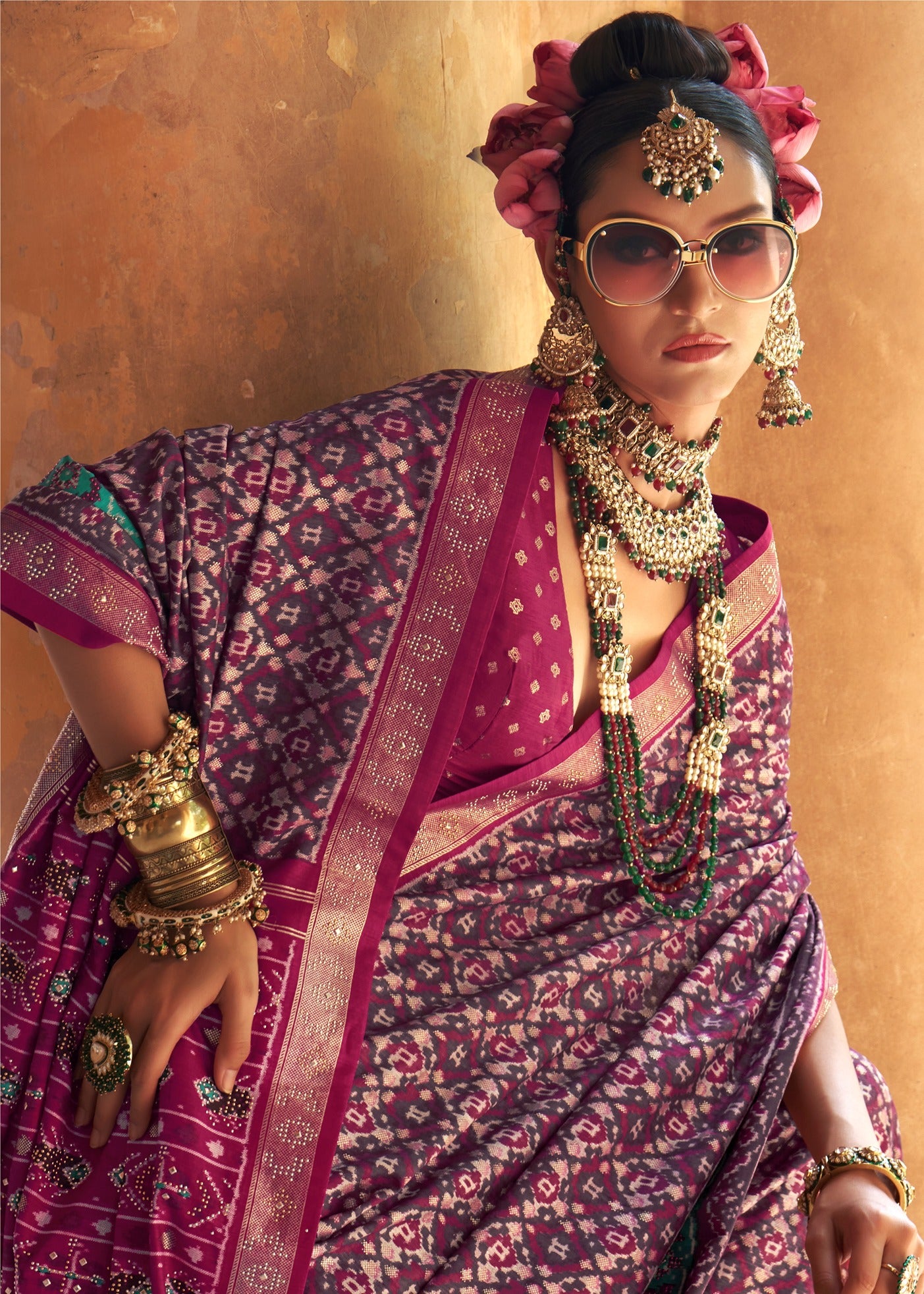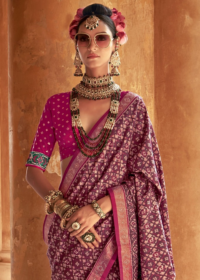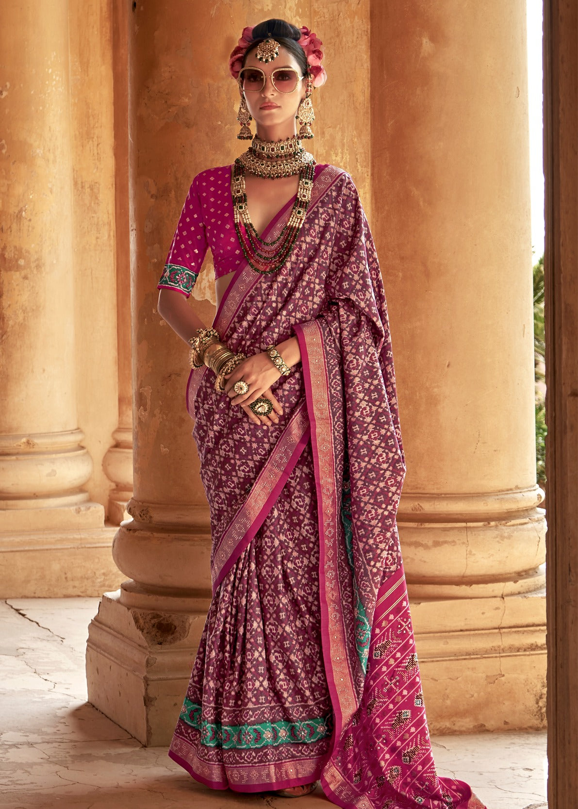 MAGENTA PINK DESIGNER PATOLA SILK SAREE ONLINE SHOPPING FOR WEDDING