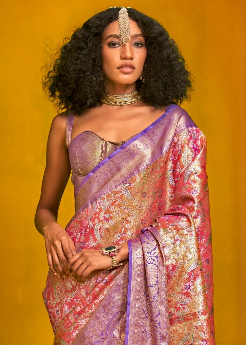 Orange and Purple Kanjivaram Silk Handloom Saree with Purple Blouse