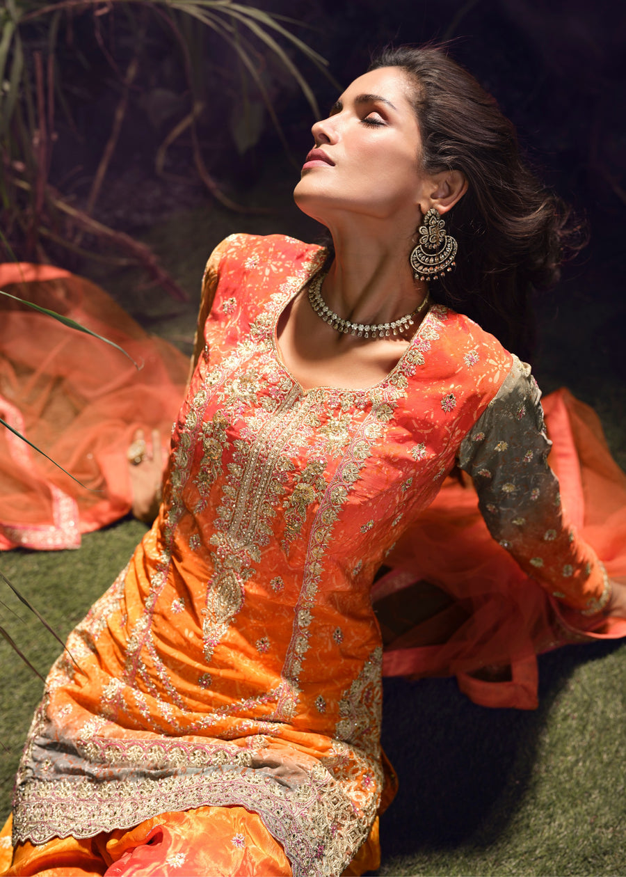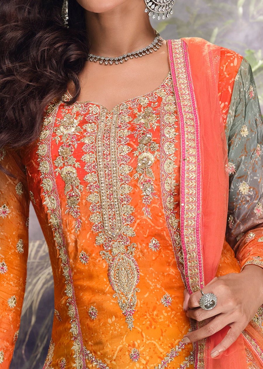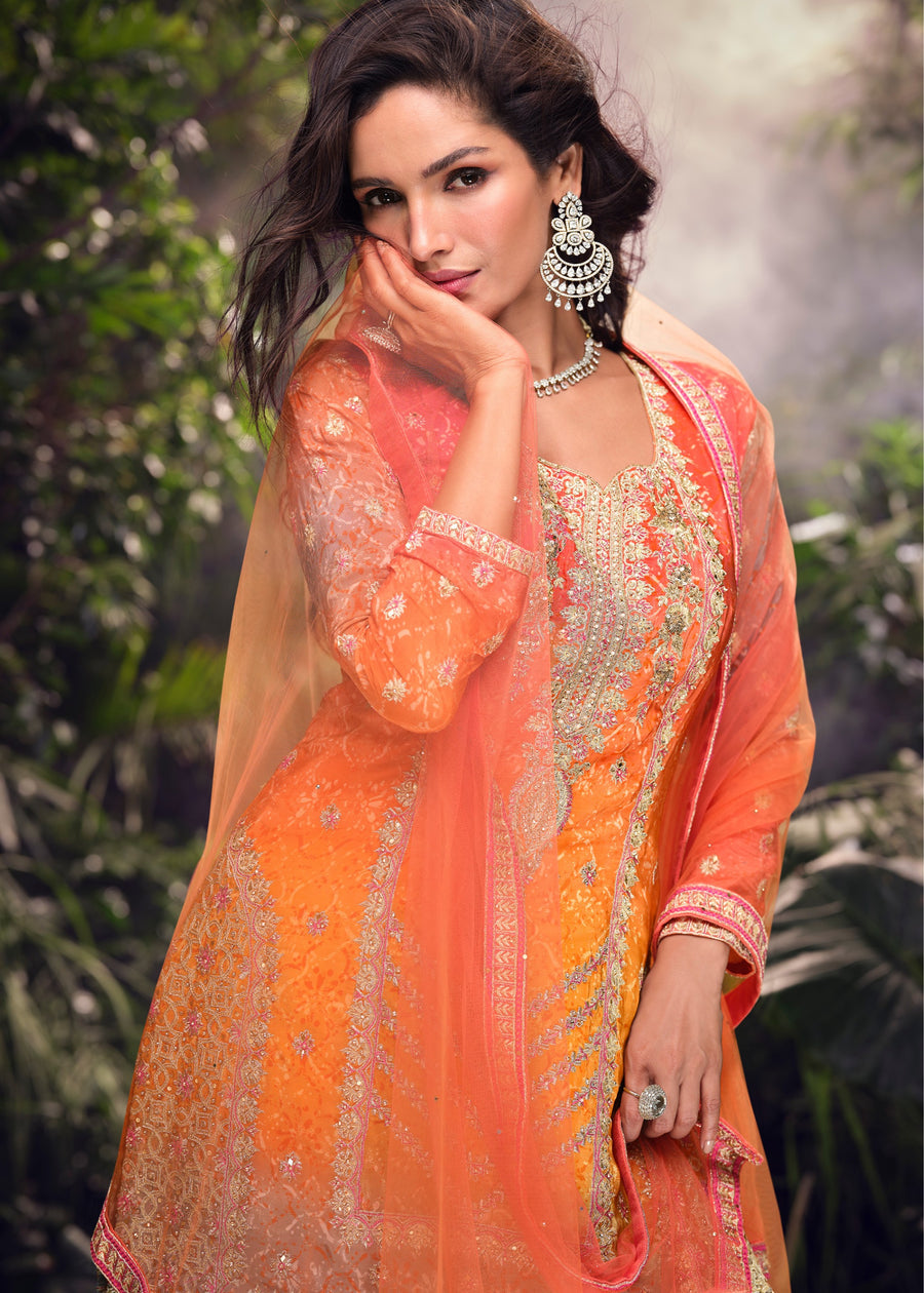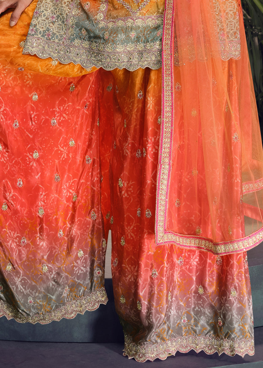Orange Readymade Ombre Chinon Silk Palazzo Suit Set
