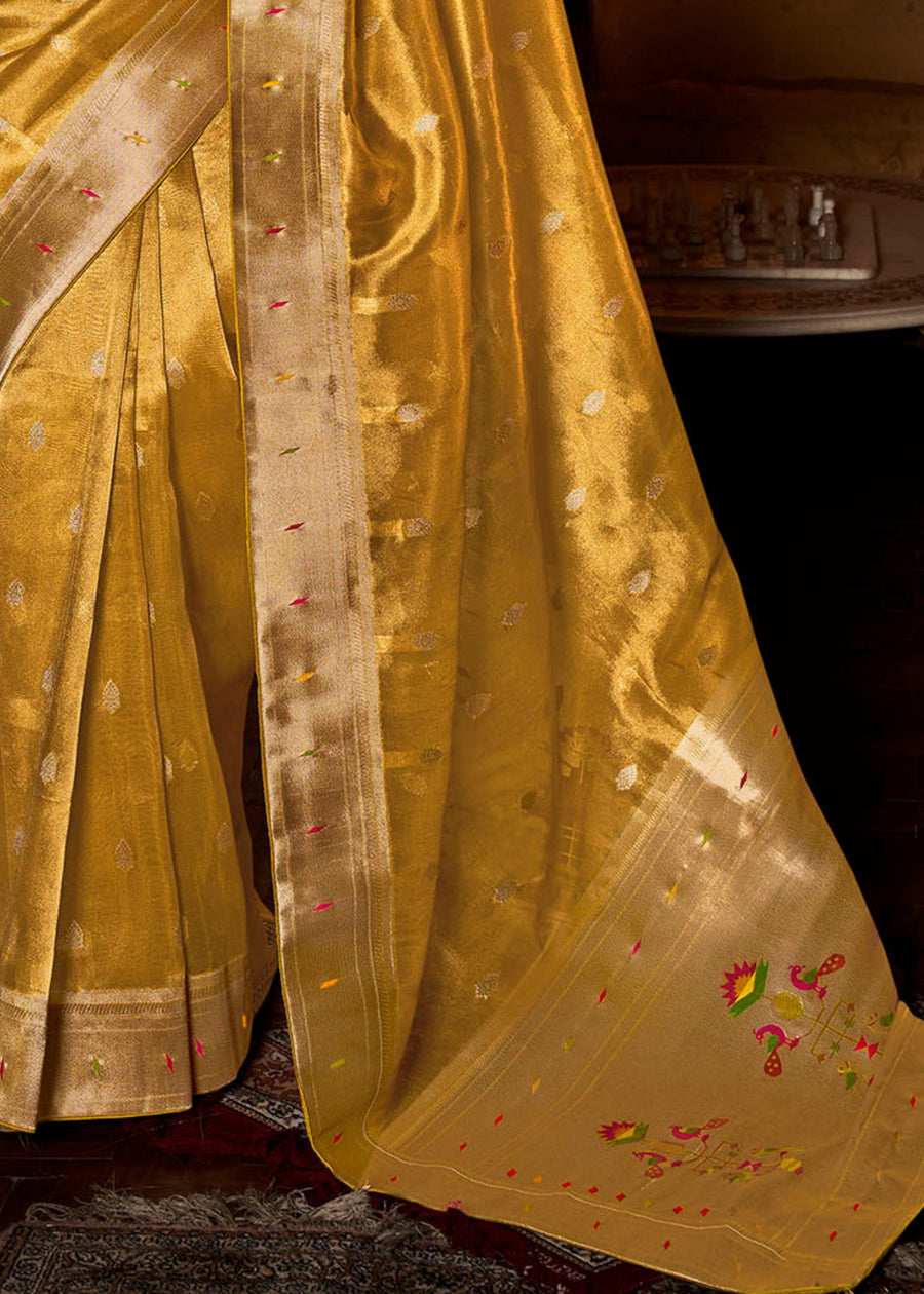 Paithani Tissue Silk Yellow Handloom Saree & Contrast Green Embroidered Blouse