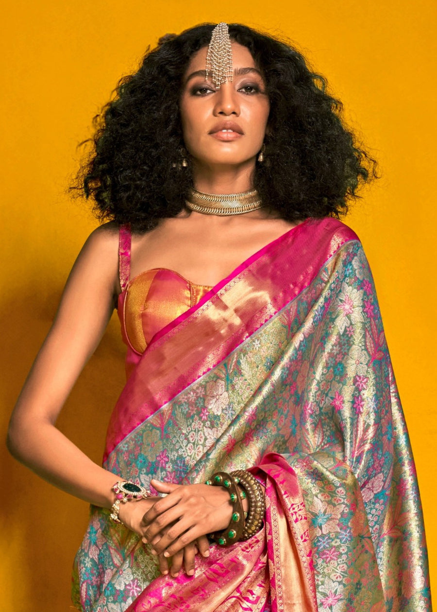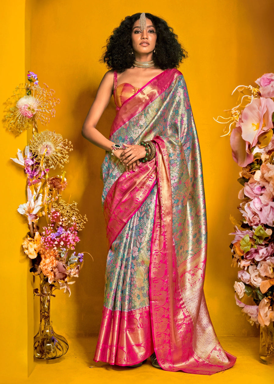Pastel Blue and Pink Kanjivaram Silk Handloom Saree