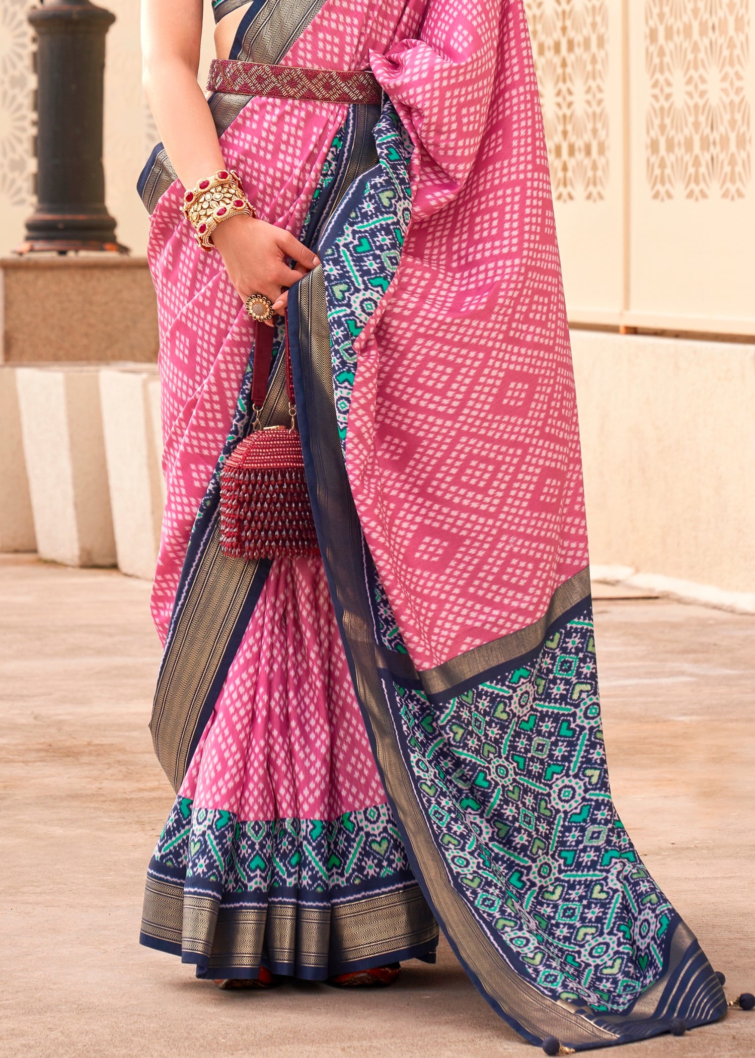 - Do not spray perfume on a zari patola silk saree.