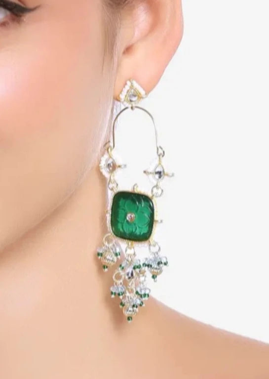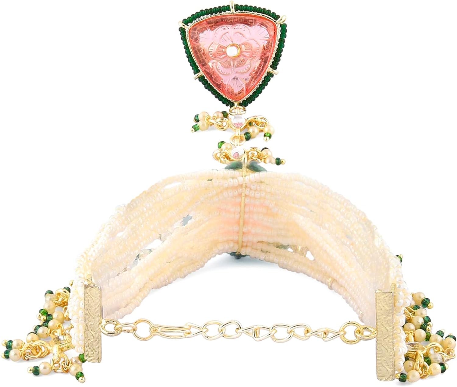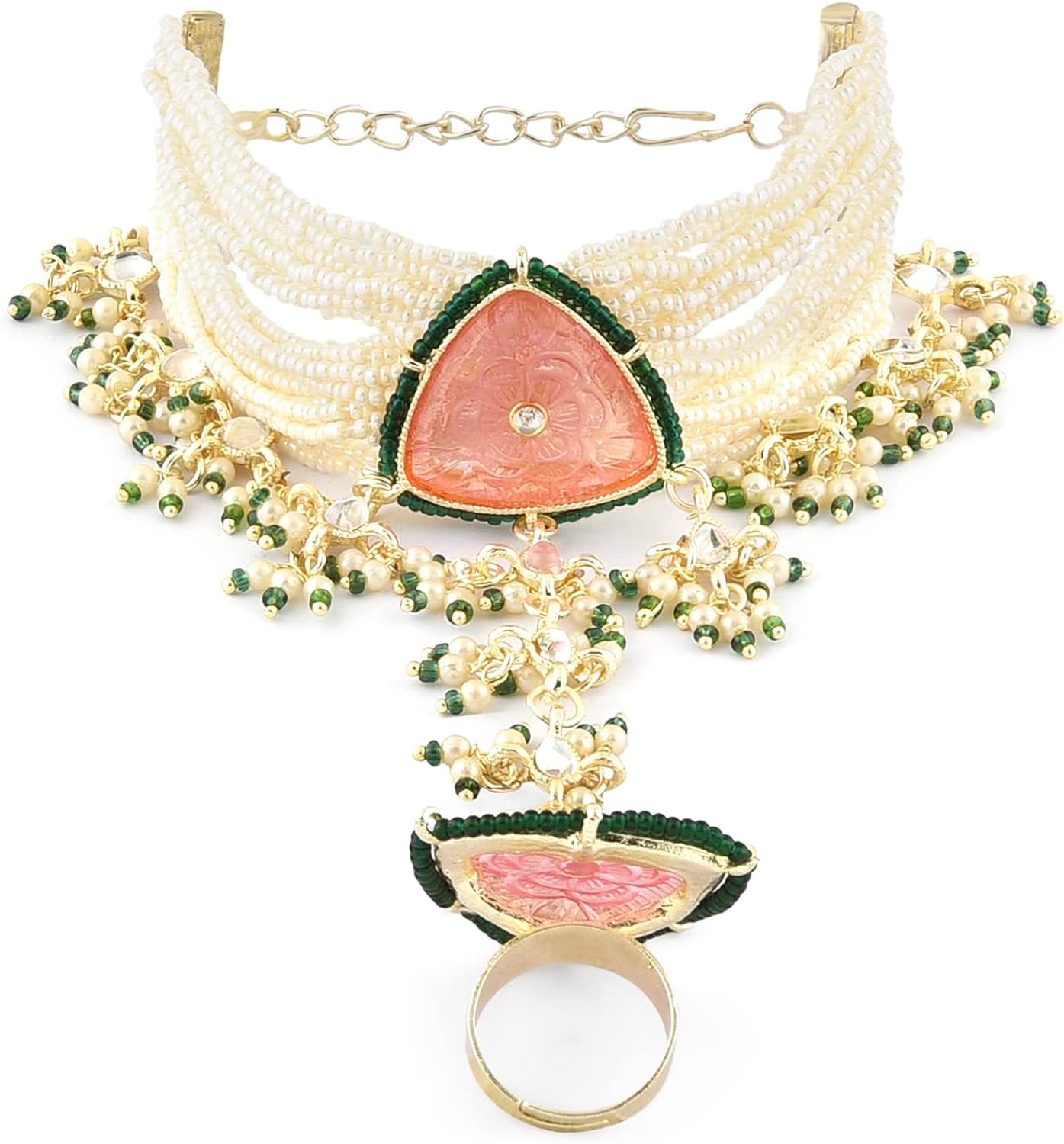 Make a statement with our Indian Artificial Pearls & Kundan Haath Phool Hand Harness Jewellery and Earrings, and let your hands sparkle with timeless beauty and elegance.