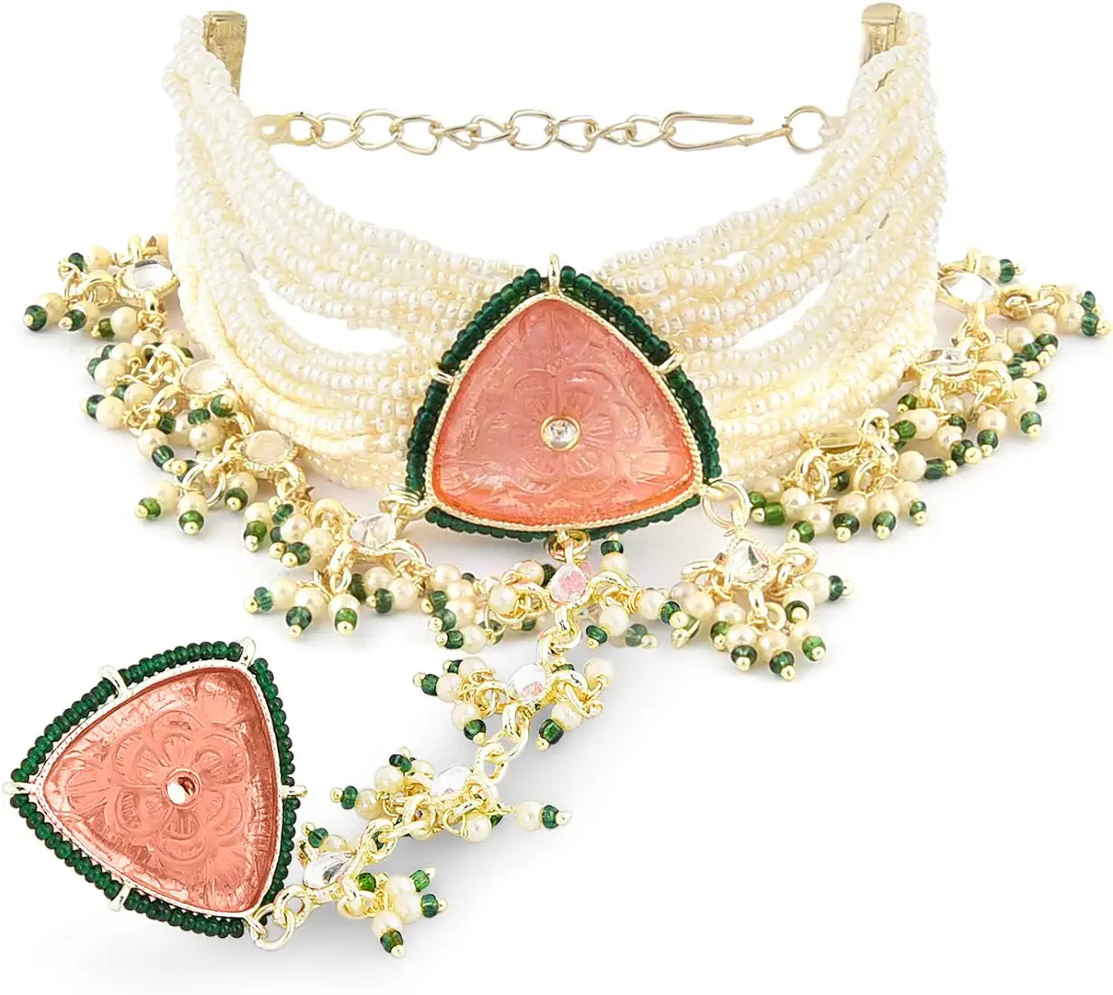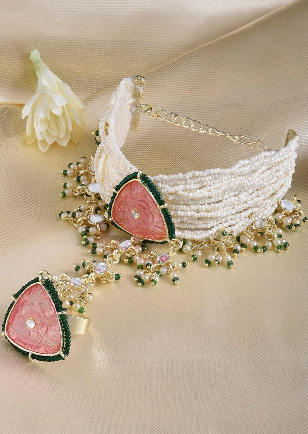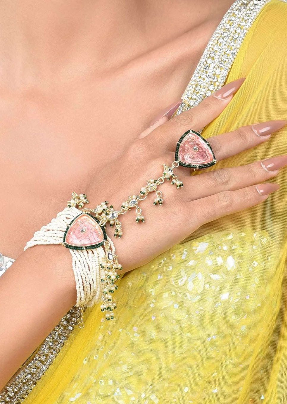 Pearls & Kundan Haath Phool Hand Harness Jewellery & Earrings