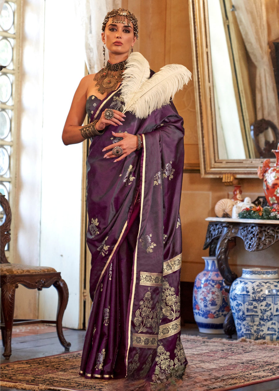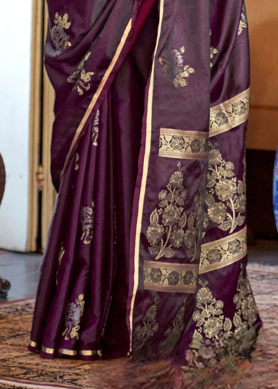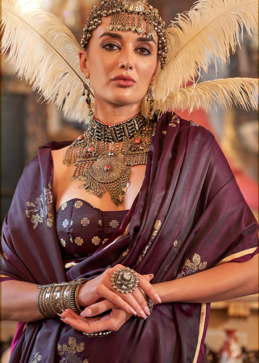 Pure Banarasi Satin Silk Chocolate Brown Handloom Saree