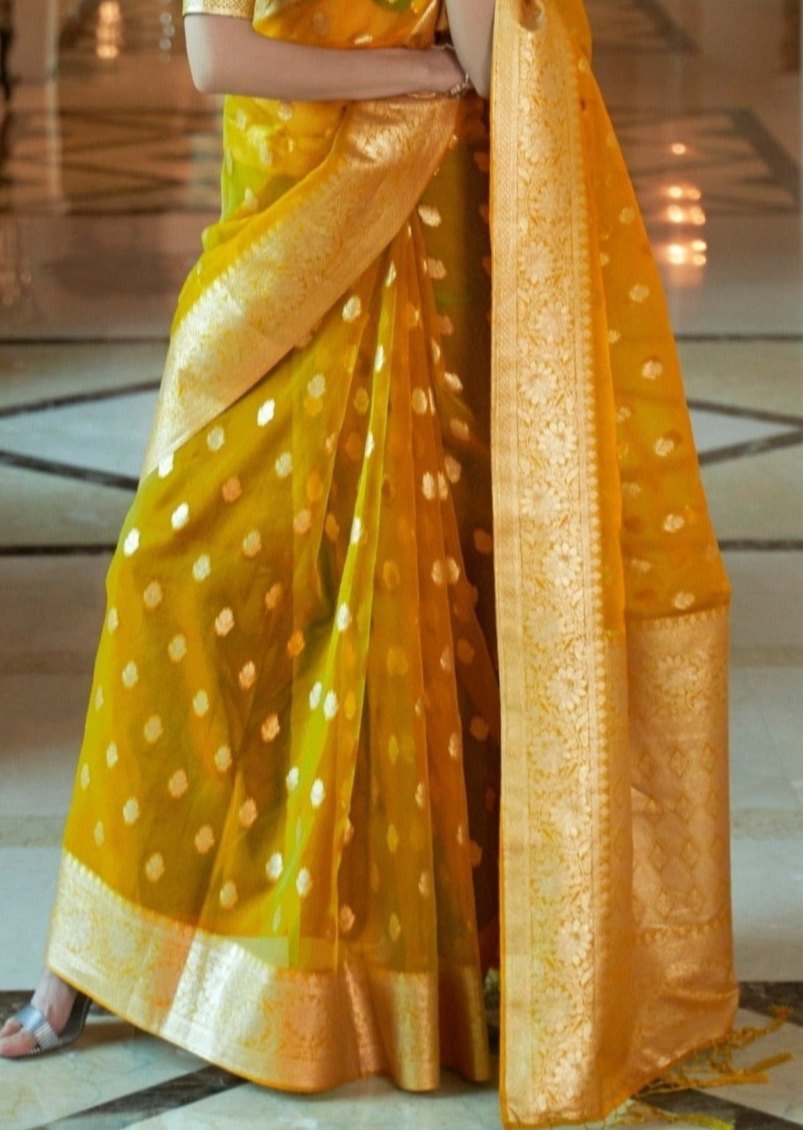 Pure Handloom Organza Turmeric Yellow Saree