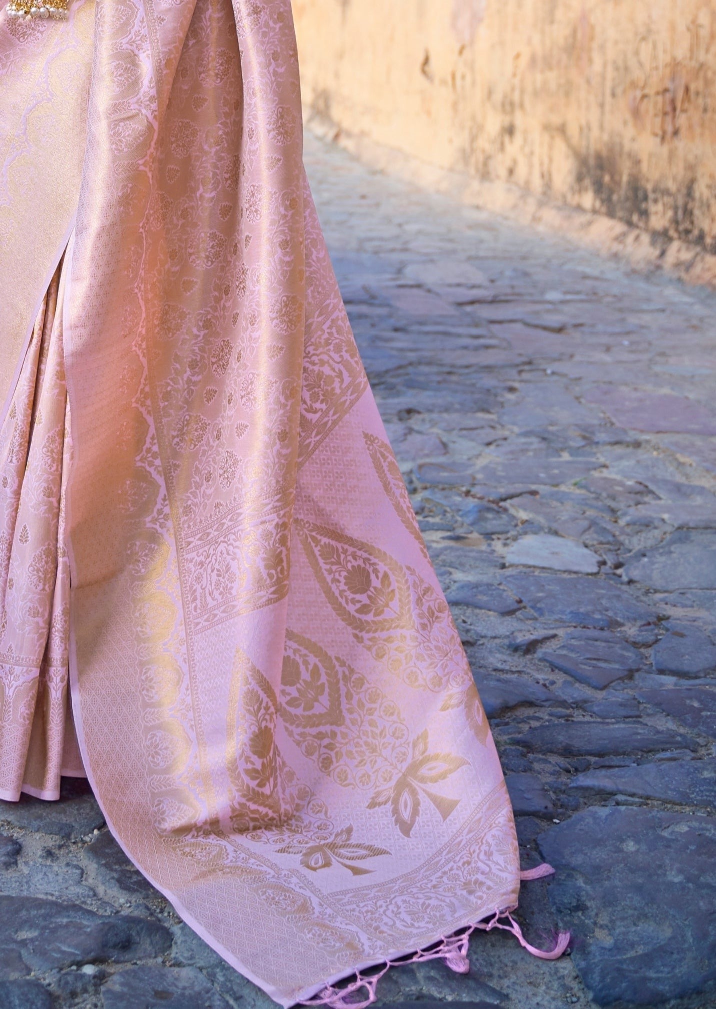 Pure Handloom Silk Kanjivaram Saree (Powder Pink)