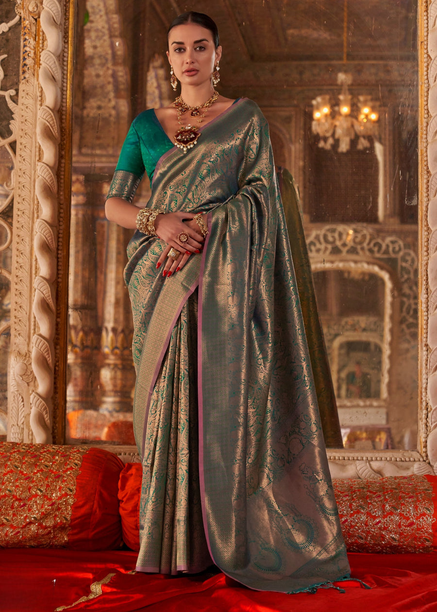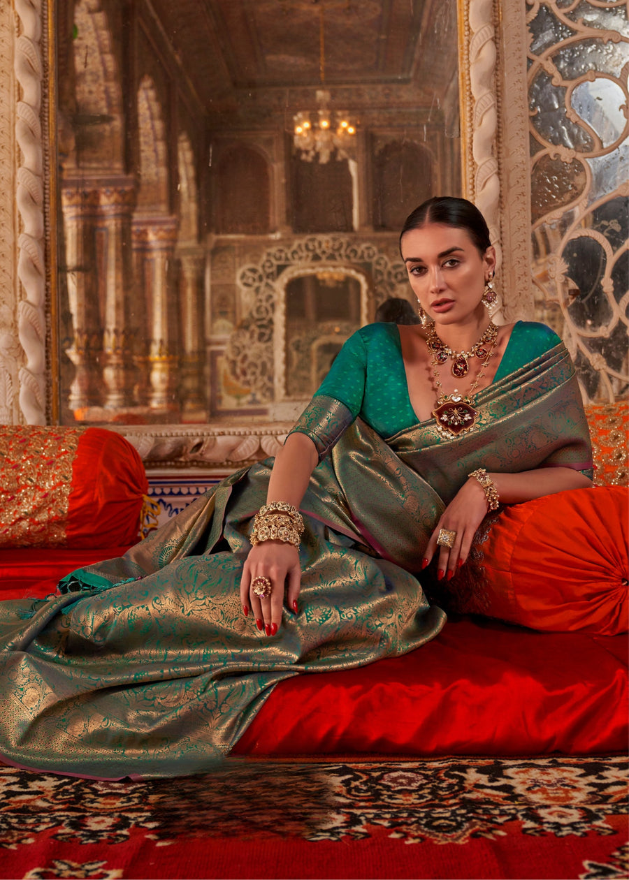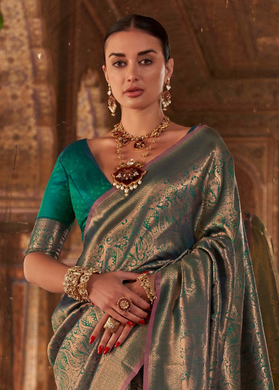 Royal dark green shade loved by traditional and modern saree lovers