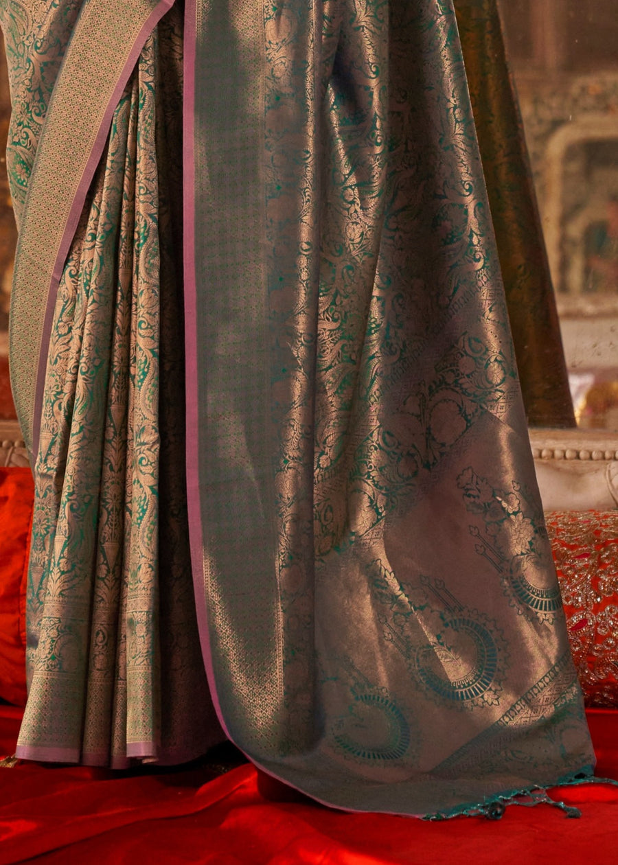 Pure Handloom Weaving Soft Banarasi Silk Dark Green Saree
