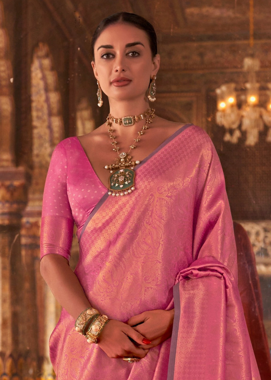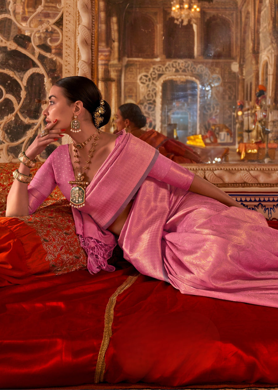 Pure Handloom Weaving Soft Banarasi Silk Pastel Pink Saree