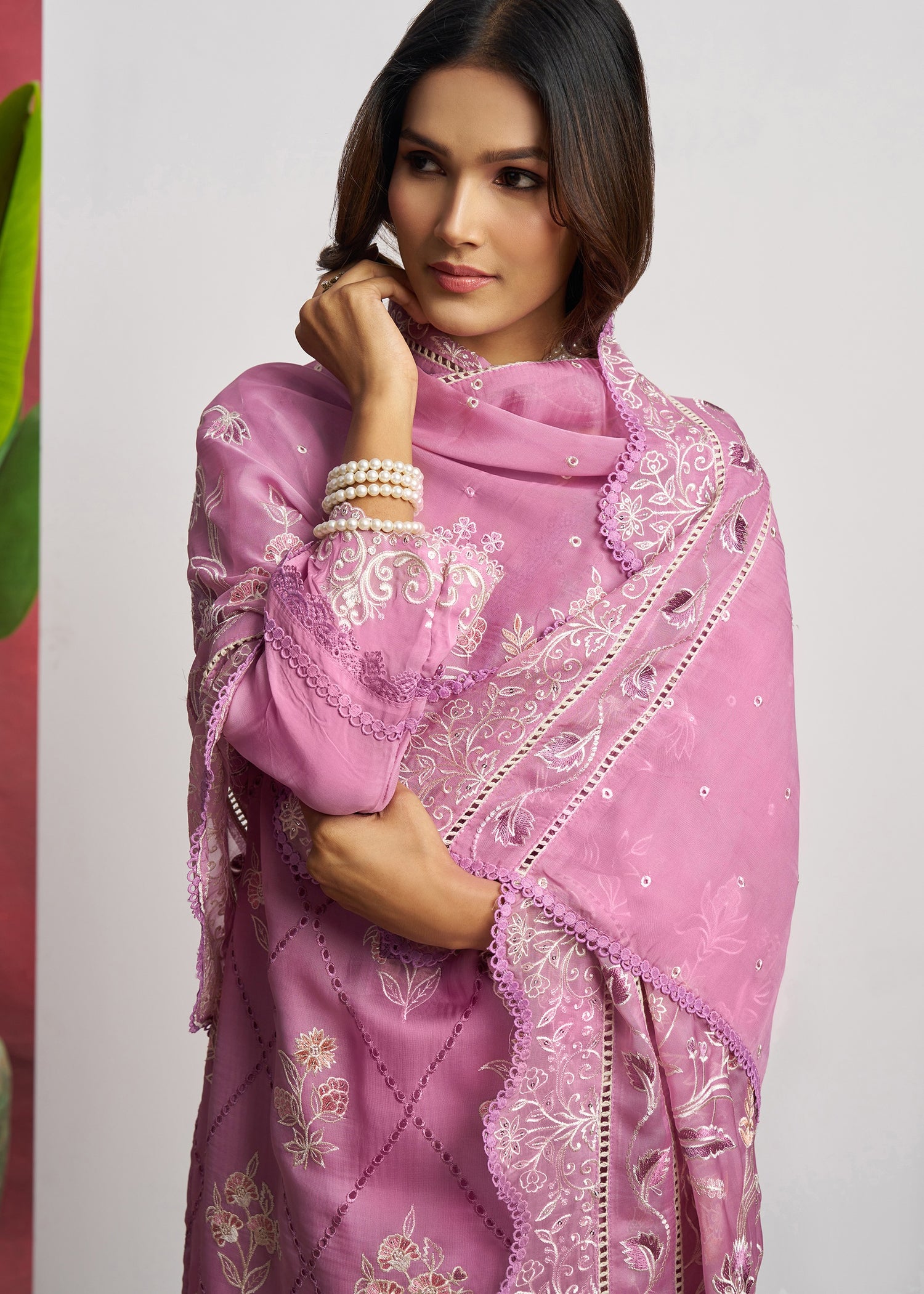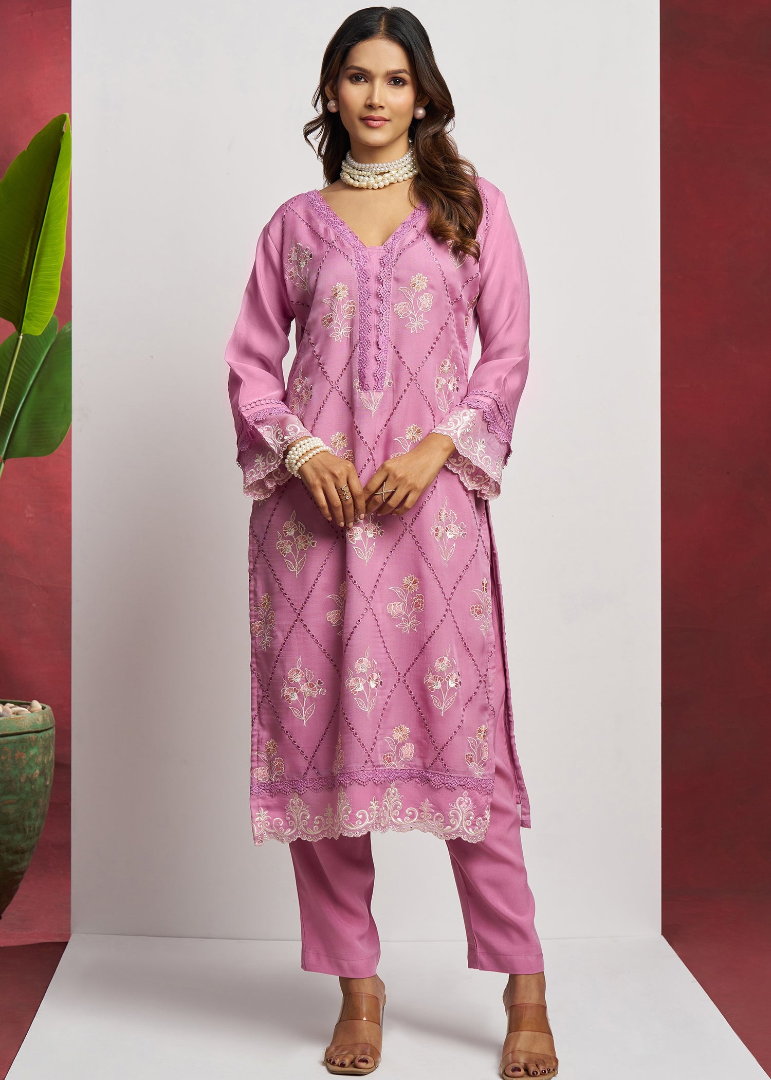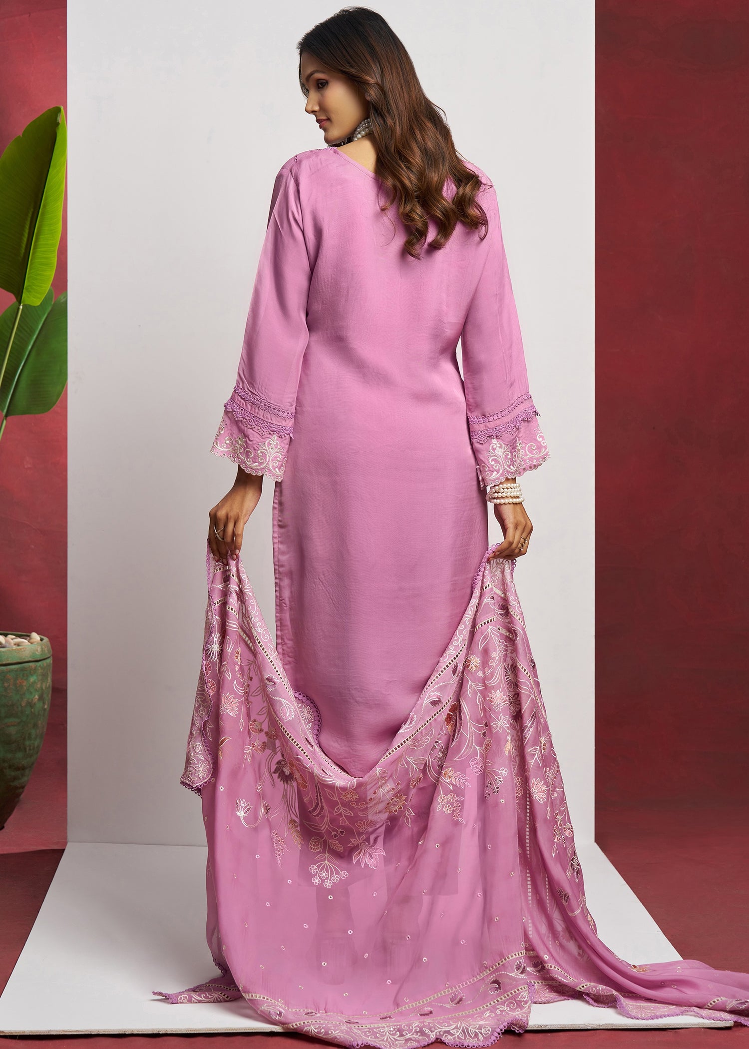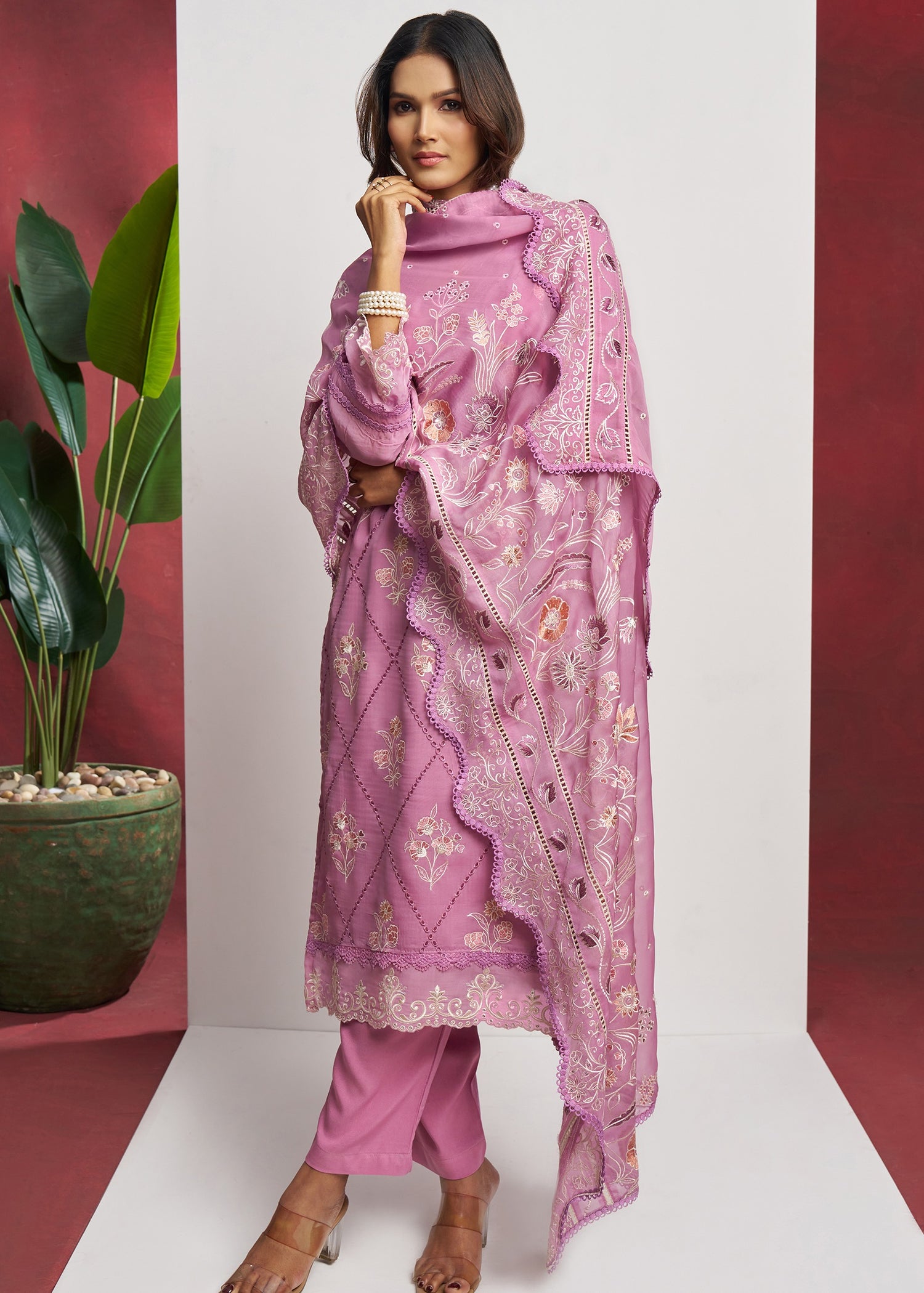 Pair it with your favorite accessories and create a timeless look that turns heads wherever you go. This Pure Organza Pink Unstitched Salwar Suit Set is a must-have for fashion-forward individuals who appreciate style, comfort, and tradition.