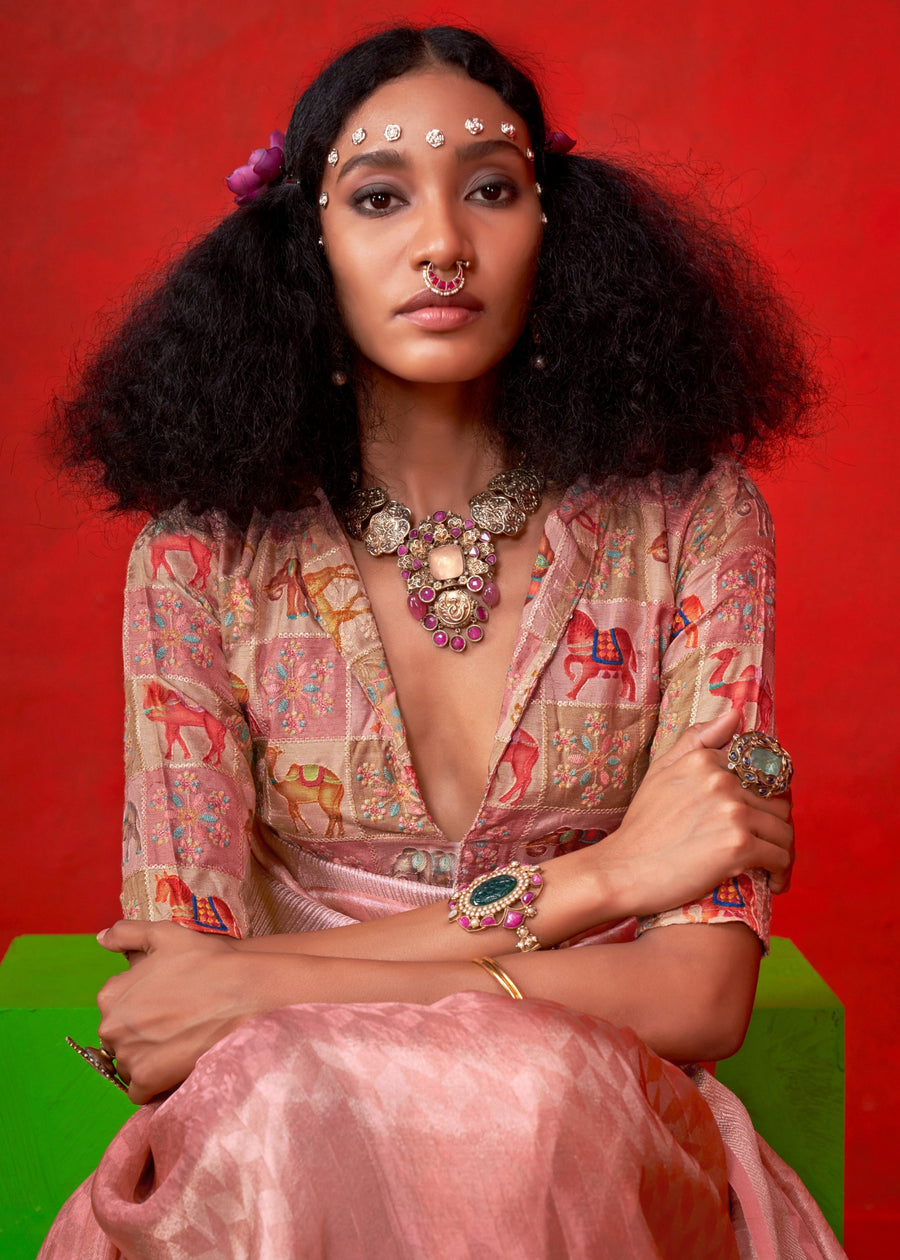 Rose Peach Banarasi Tissue Silk Handloom Saree