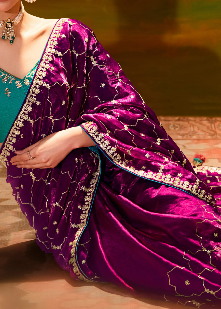 Satin Tissue Magenta Pink Embroidered Saree & Jade Green Blouse